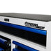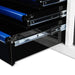 Professional Styling – Available in black with grey drawers or white with black drawers, accented by anodized blue trim pulls.