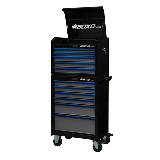 BoxoUSA Pro Series 26" 11-Drawer Rolling Tool Box – Black & Blue
